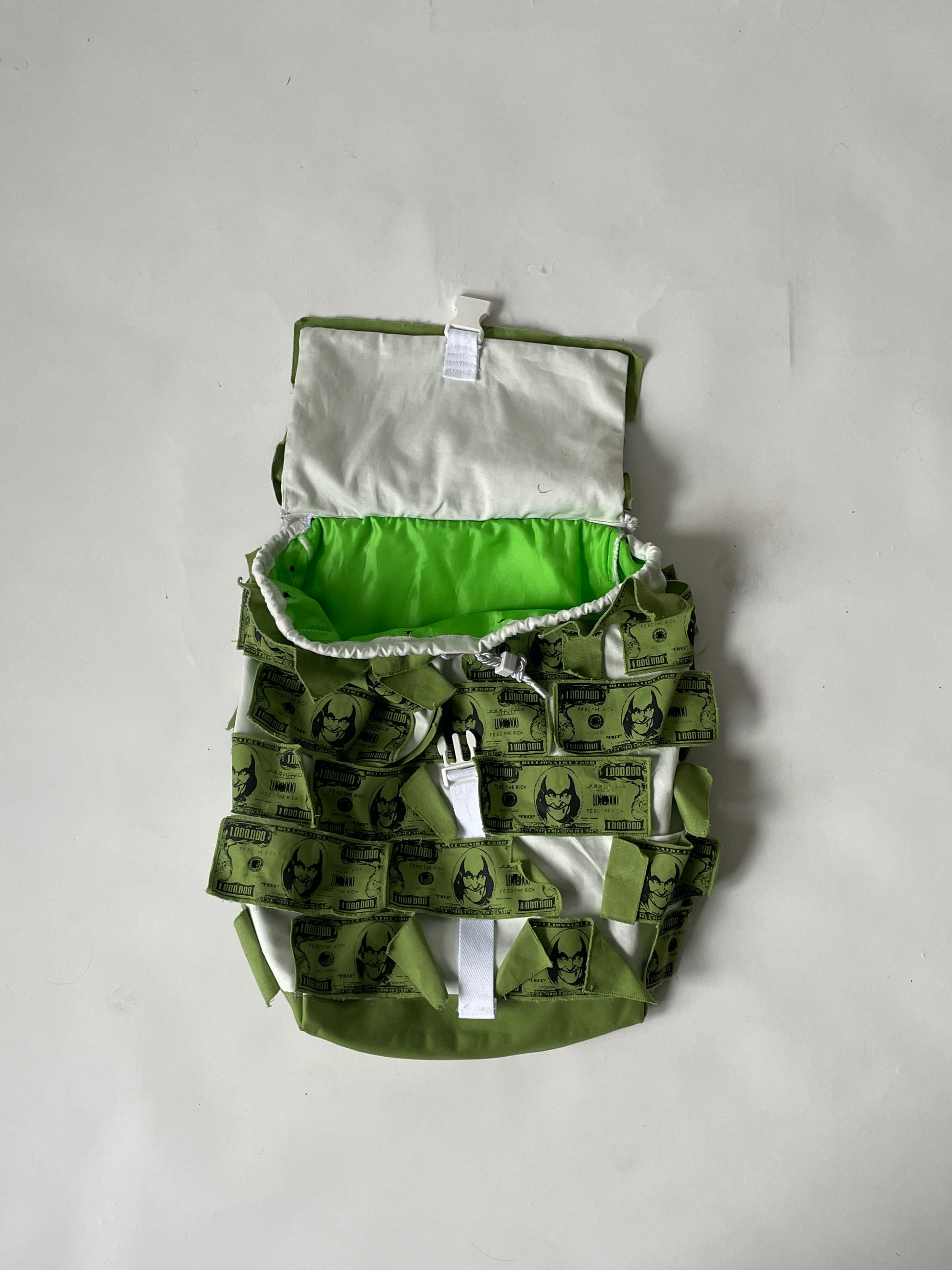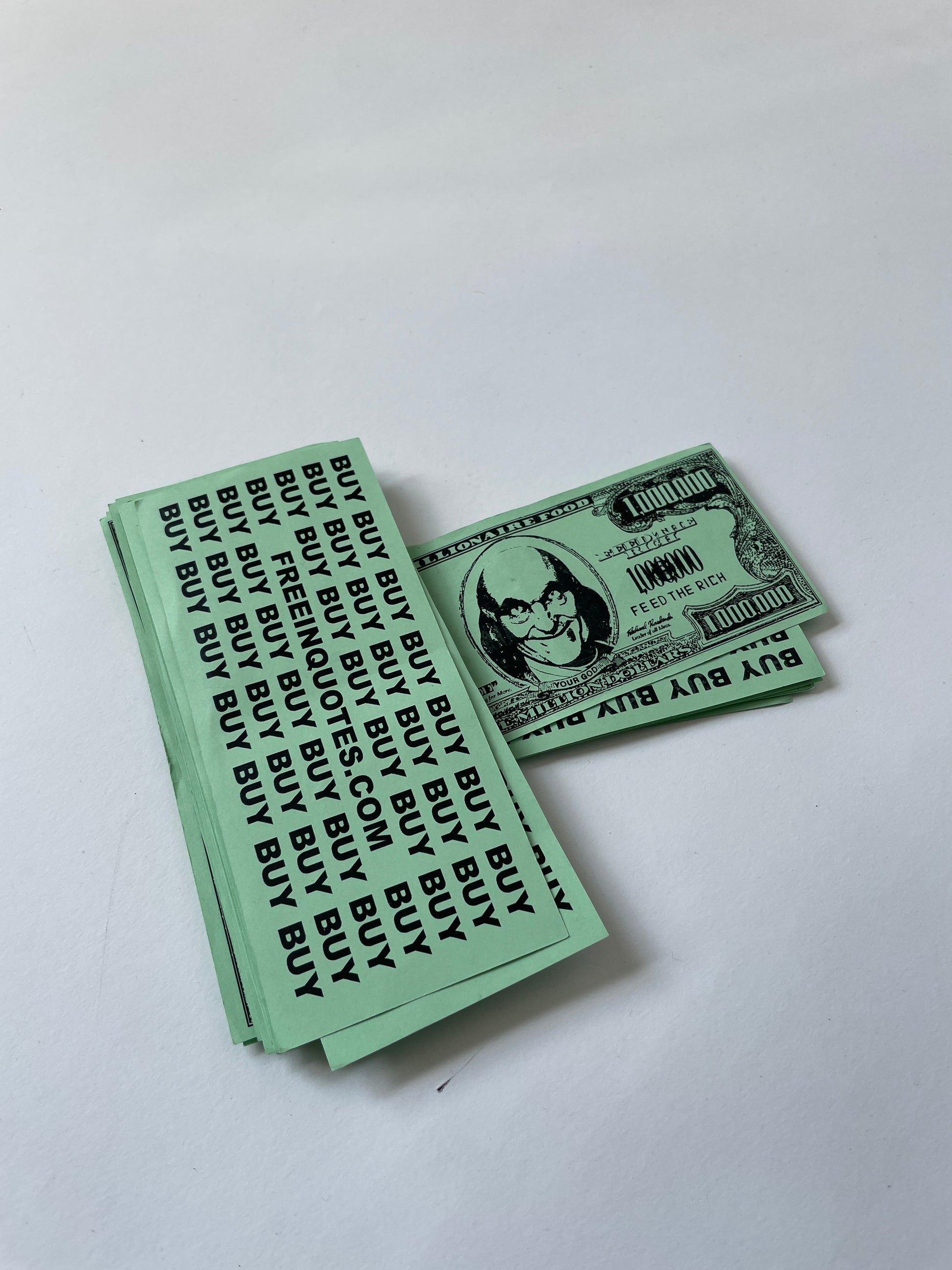 Serve as a reminder of the vast wealth inequality that exists in the US. As the top 1% continues to accumulate more and more wealth, the rest of us are busy feeding their growth. The evil faces symbolize the ruthless pursuit of wealth at all costs, disregarding the needs and well-being of others. The message of "feed the rich" is a commentary on the way in which our economic system is rigged to benefit a small minority of the population.