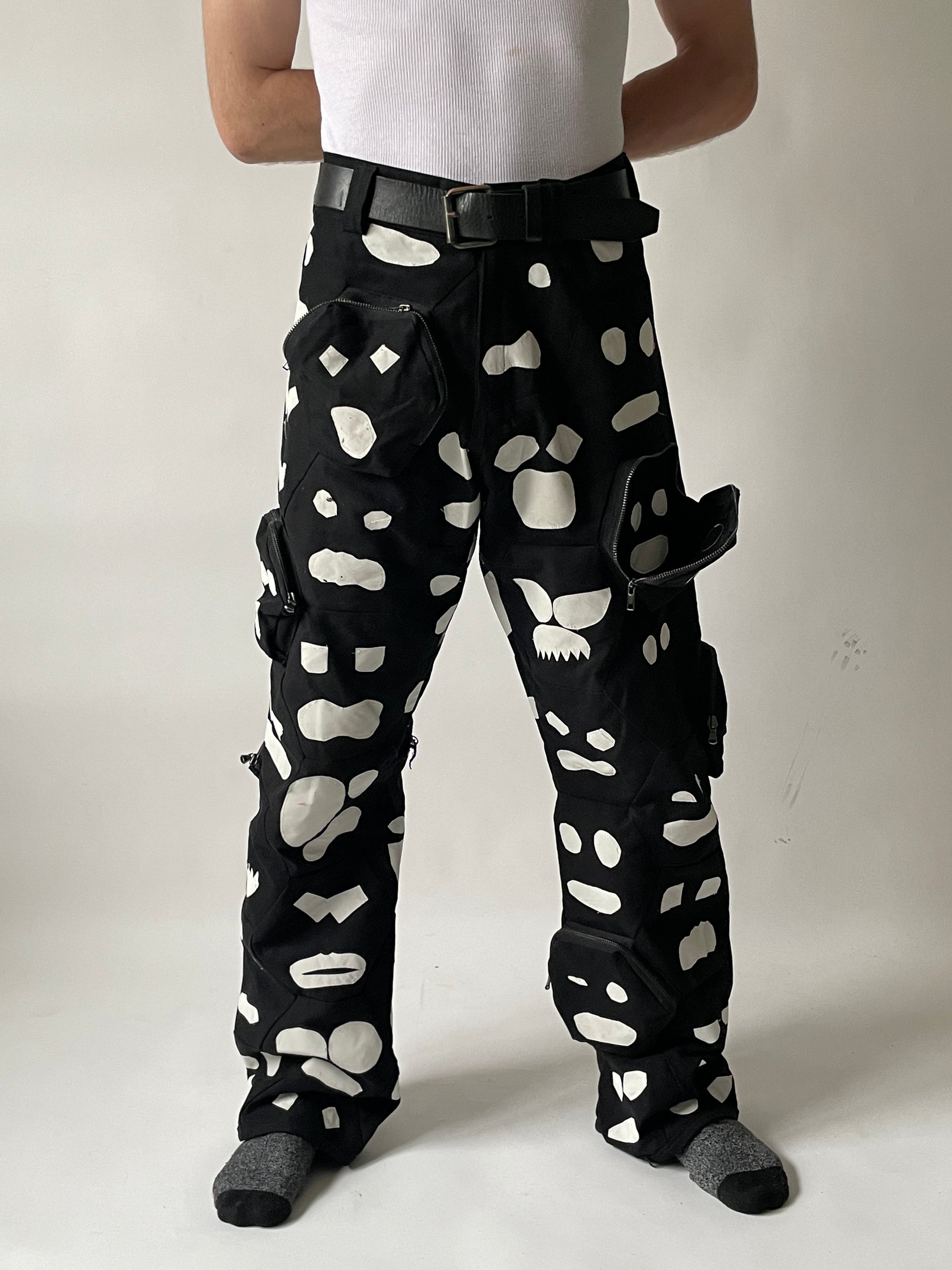 These pants represent the many individuals who make up our world. With each face representing a unique individual with their own emotional state and expression, these pants serve as a reminder of the diverse and complex nature of humanity.